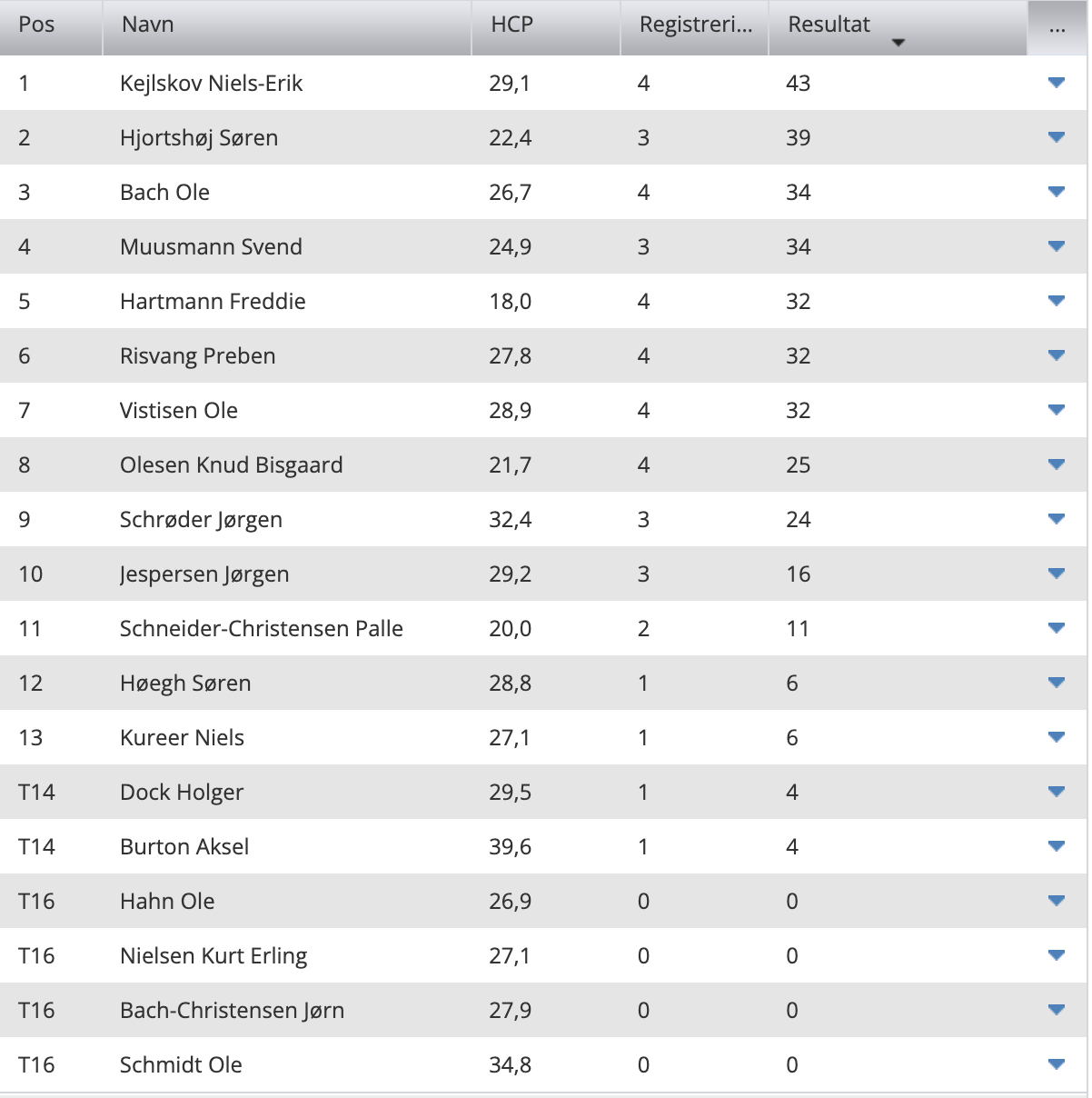 14 spillere har deltaget i turneringen og der er ikke større spredning i tabellen end der med gode scores / mindre gode scores kan vende op og ned på stillingen.