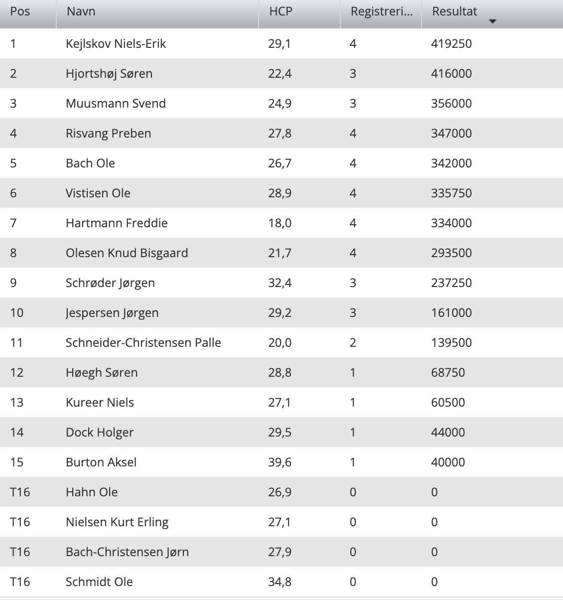 15 spillere har deltaget i turneringen og der er ikke større spredning i tabellen end der med gode scores / mindre gode scores kan vende op og ned på stillingen.